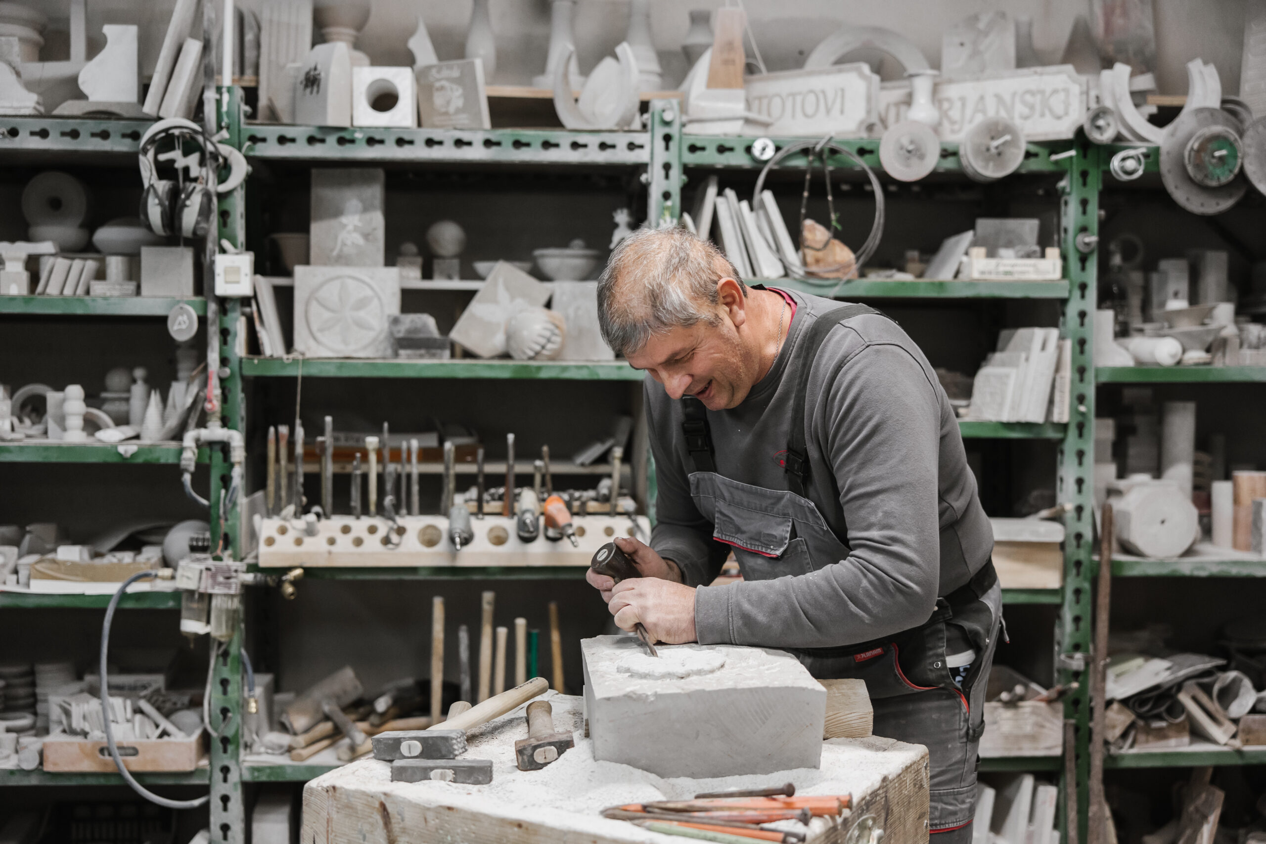Today, nearly three decades later, he holds Slovenia’s highest craftsmanship certificate and multiple national awards. But his workshop in Pliskovica remains an open, humble place where visitors are welcomed, ideas are shared, and the quiet dialogue between man and stone continues.