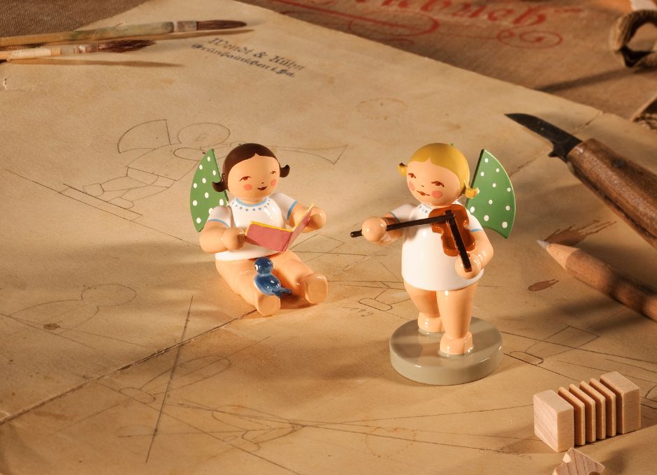 The collection has grown to over 70 Marguerite Angels and more than 80 Grünhainichen Angels, each playing a different instrument. New angels are still introduced regularly, always rooted in Grete Wendt’s design language.